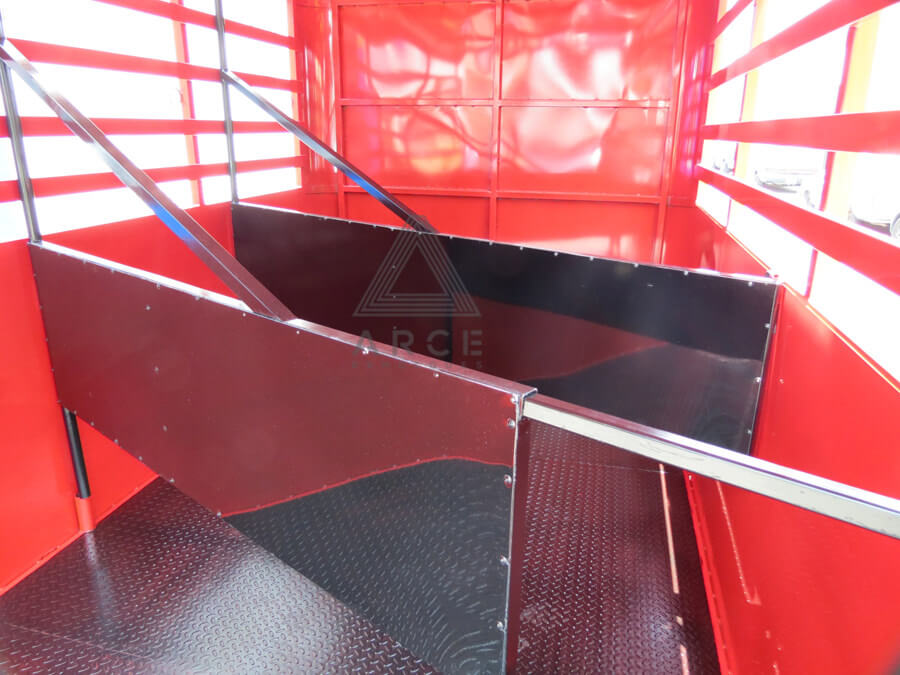 Remolque para dos caballos con divisiones centrales, diseñado para dejar las divisiones a un costado para meter un RZR